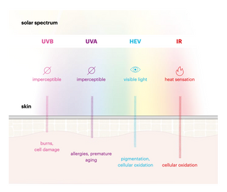 Saule ir enerģijas avots, kas sasniedz mūsu planētu caur dažādu viļņu garumu (λ) elektromagnētisko starojumu. Cilvēki uztver starojuma iedarbību redzamās gaismas (HEV) vai siltuma veidā, piemēram, infrasarkano starojumu (IR). Tomēr UV starojums ir neredzams, tāpēc saules iedarbība rada nemanāmu risku.